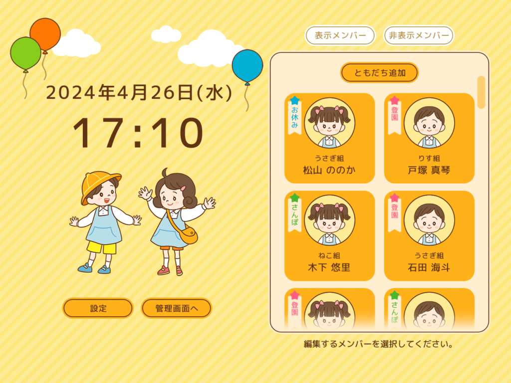 アイコンも豊富に用意しているため、各園児が気に入ったアイコンが設定できるとうれしいです。